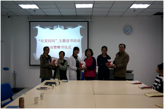 4月26日下午4:00,商学院关工委在东校区实验楼402组织了“红星闪闪”主题读书活动启动暨赠书仪式。校关工委秘书长牛豫星,路晓梅、王史维老师,商学院党总支书记陆伟新、副书记丁乐声、院学工办主任吴红梅及商学院学生骨干、各班级入党积极分子代表30余人参加了活动。丁乐声副书记主持了活动。