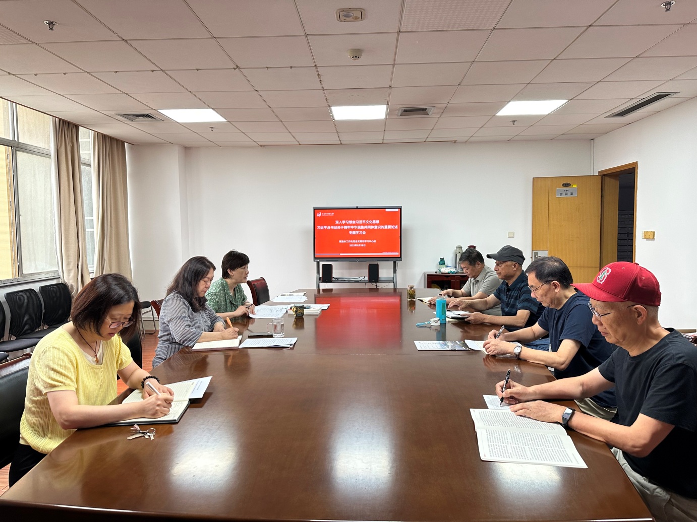 9月18日上午,离退休工作处党总支理论学习中心组召开(扩大)学习会,就《深入学习领会习近平文化思想、习近平总书记关于铸牢中华民族共同体意识的重要论述》进行专题学习,离退休工作处党总支书记丁乐声主持会议。