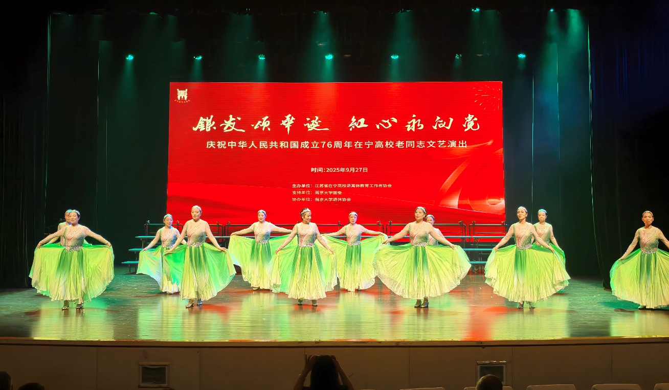 9月27、28日我校离退休工作处选送的舞蹈《我们正青春》分别参加了在宁高校老同志庆祝中华人民共和国成立76周年文艺演出和广场舞展示交流活动,老同志优美的舞姿,赢得现场阵阵掌声。